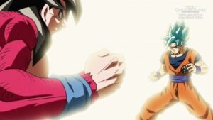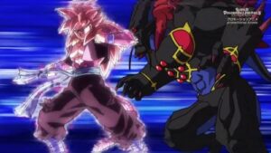A batalha começa com Goku energizado em Instinto Superior e dominando Kamioren, que não tem conhecimento da Energia Divina, enquanto…