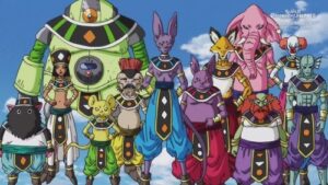 Goku, Vegeta e Xeno Trunks estão lutando contra Beerus, enquanto os outros e os outros Deuses da Destruição assistem. Beerus…